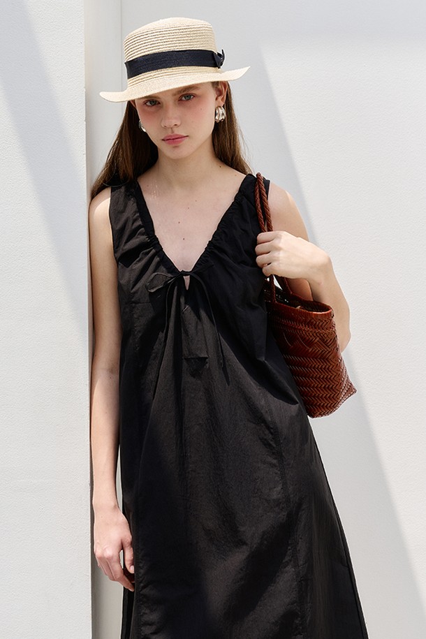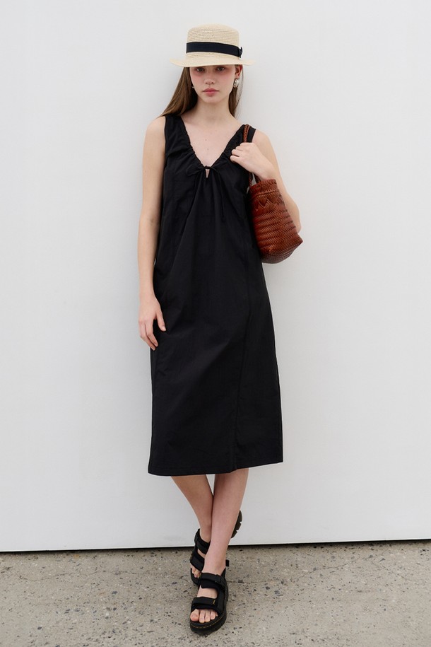 투웨이 셔링 슬리브리스 드레스 Two-way cotton sleeveless dress Black