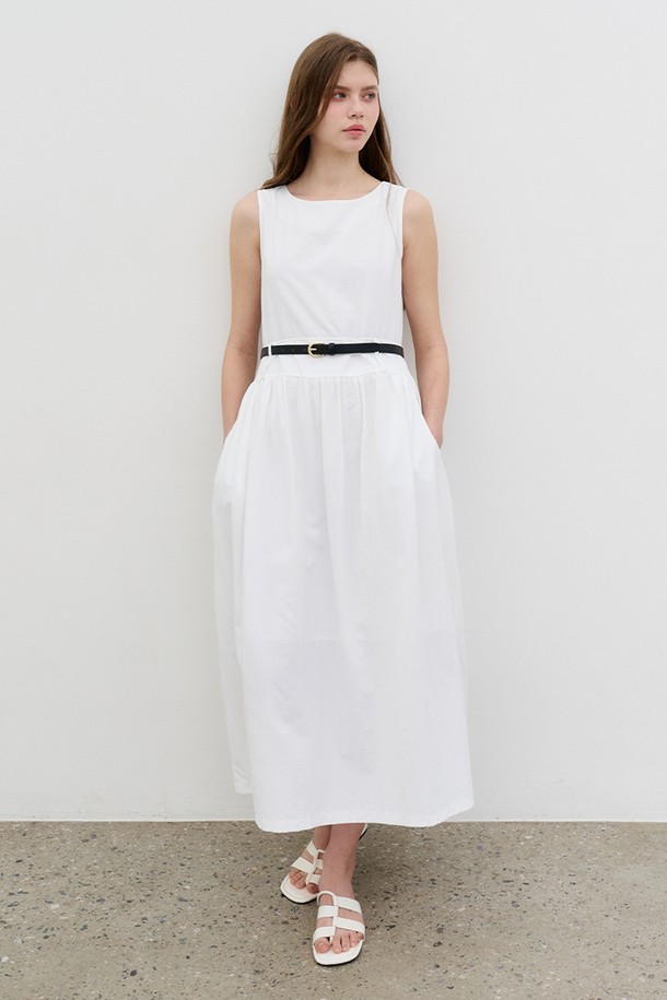 클래식 셔링포켓 맥시 드레스 Classic shirring pocket maxi dress White