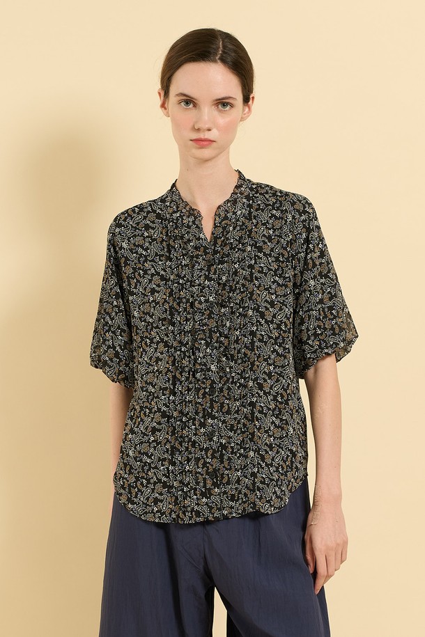 [25FA] 페이즐리 프릴 블라우스 - BLACK B5F7G47599