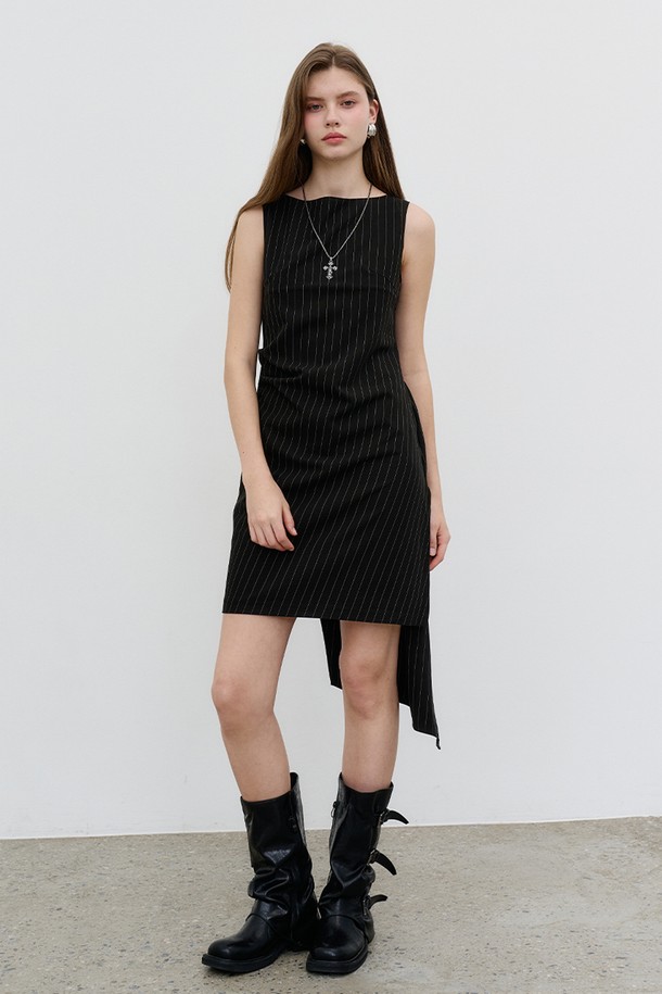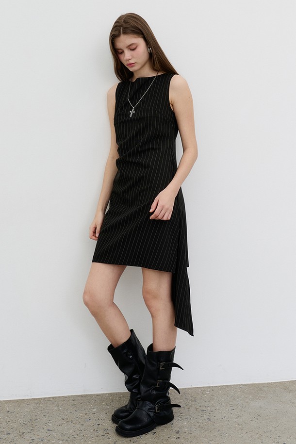 핀스트라이프 언밸런스 레이어드 드레스 Pinstripe unbalanced layered dress Black