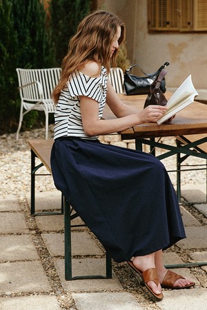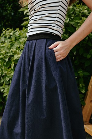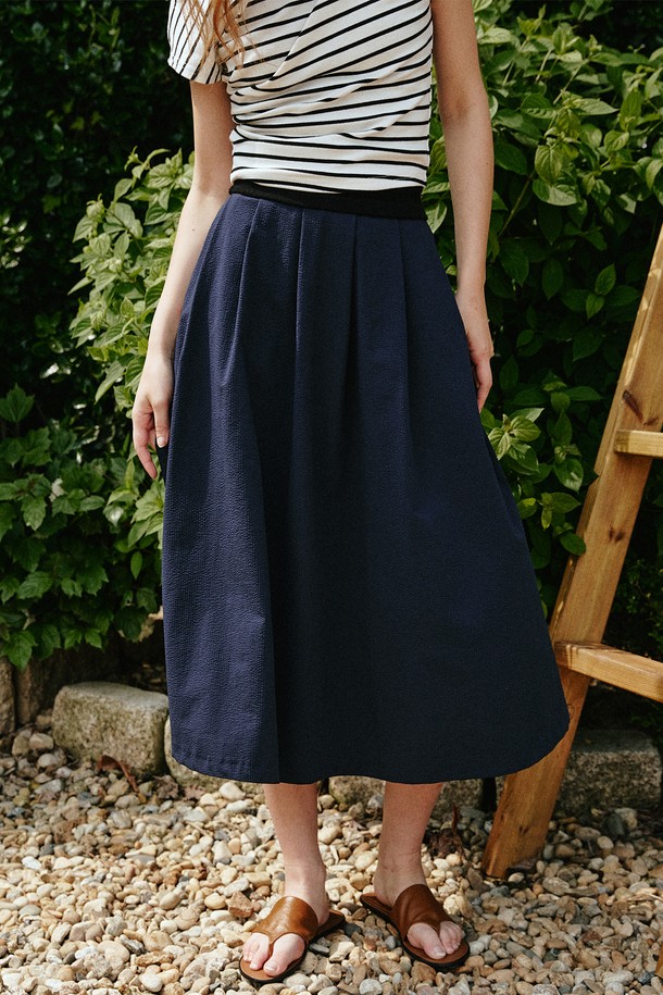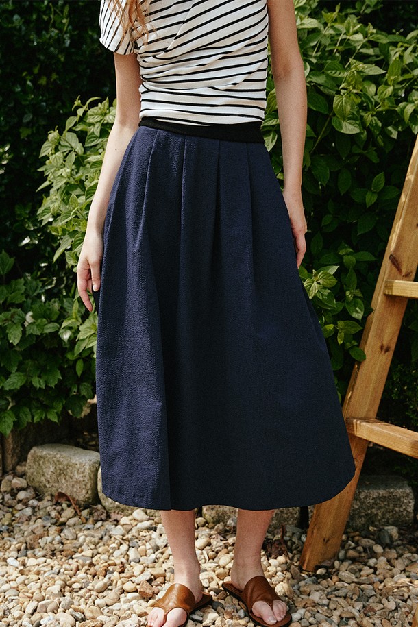 시어서커 플레어 롱 스커트 [네이비]