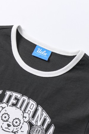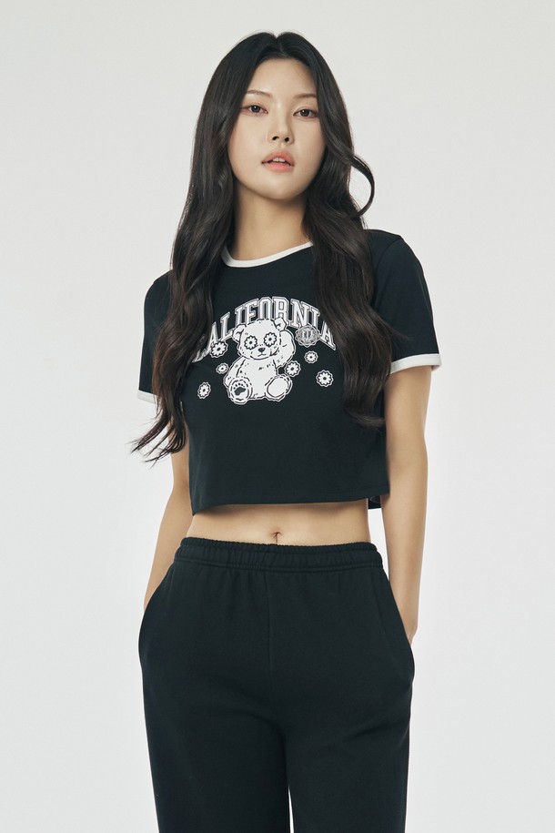 여성 크레스트 베어 크롭 슬림핏 티셔츠[BLACK](UB6ST55_39)