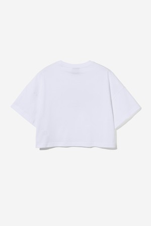 여성 크레스트 칼 로고 크롭 오버핏 티셔츠[WHITE](UB6ST59_31)