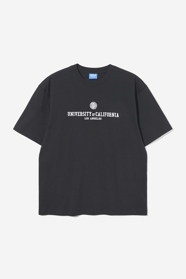 남성 유니버시티 스몰 레터링 오버핏 티셔츠[BLACK](UB6ST11_39)