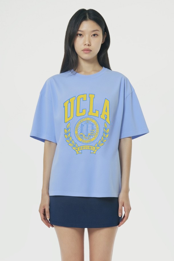 남녀공용 빅토리 뱃지 메가 오버핏 티셔츠[LT-BLUE](UB6ST12_42)
