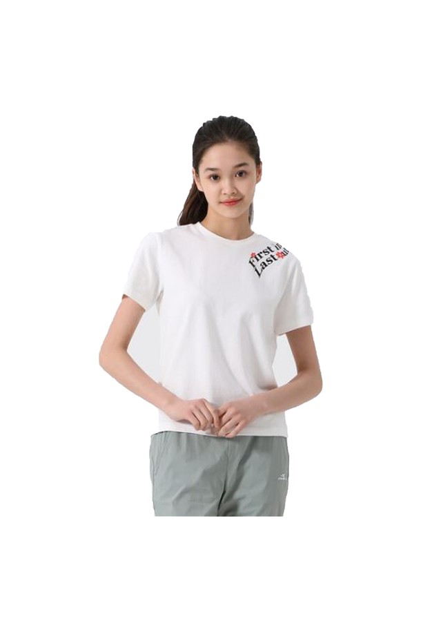 [오닐] [모델착장] 여성 변형 아트웍 반팔 티셔츠 OWTRM6201-101