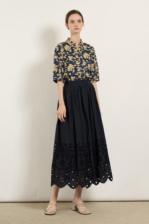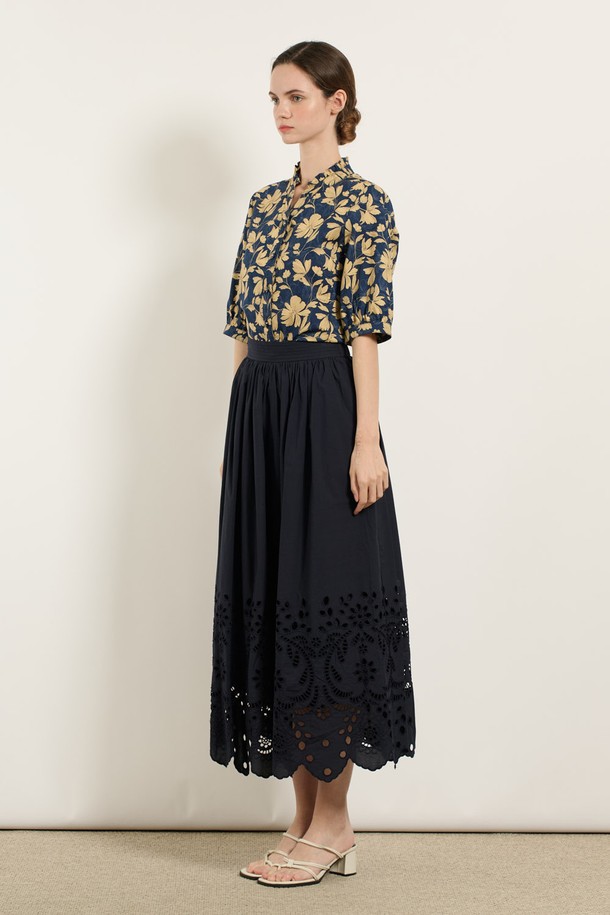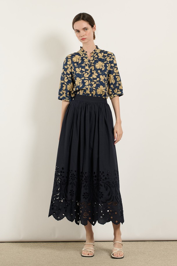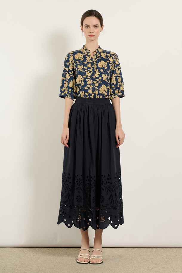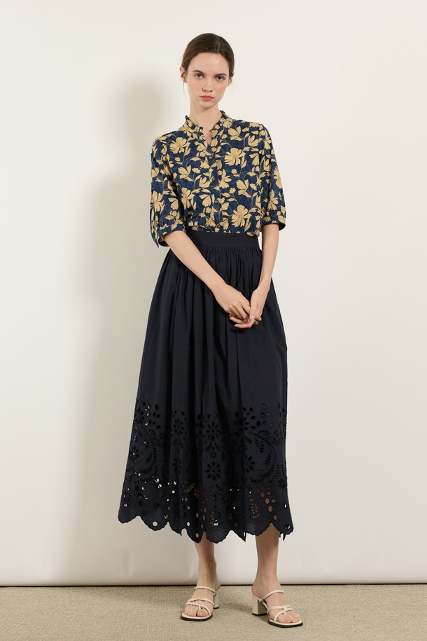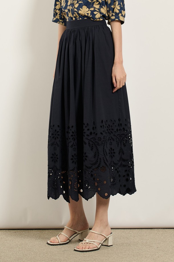 [25SU] 자수 롱 스커트 - NAVY B5M6S26055
