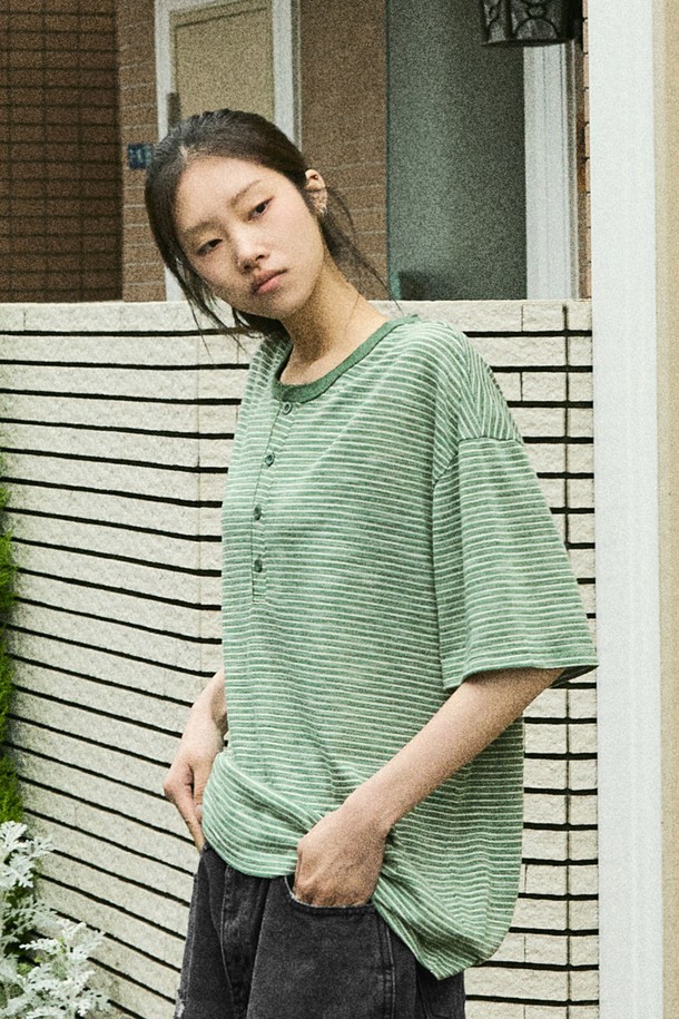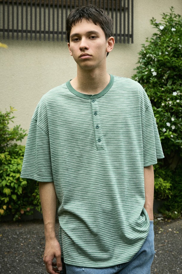 슬러브 스트라이프 헨리넥 반팔티셔츠 MST179 / 4color