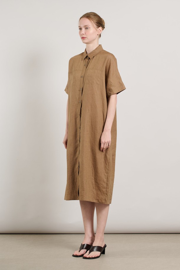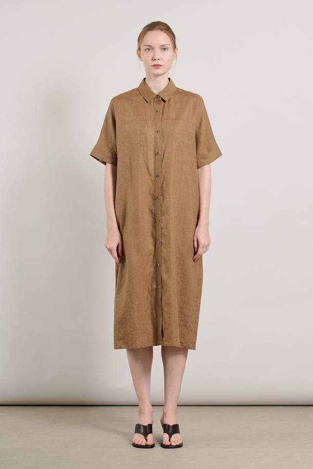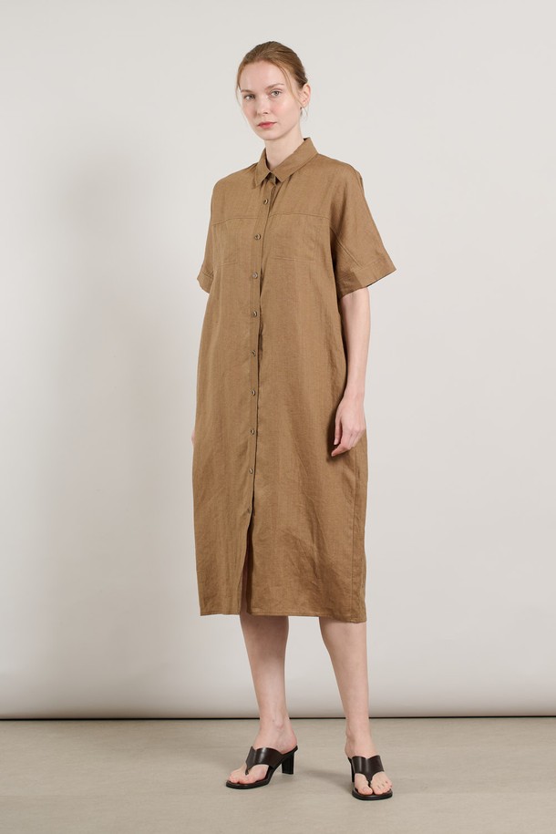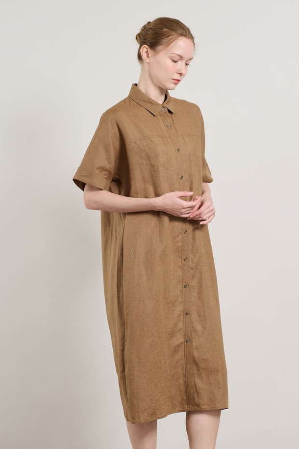 [25SU] 린넨 H라인 원피스 - CAMEL A5M4O62980