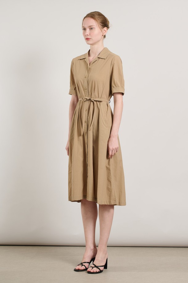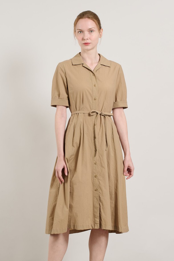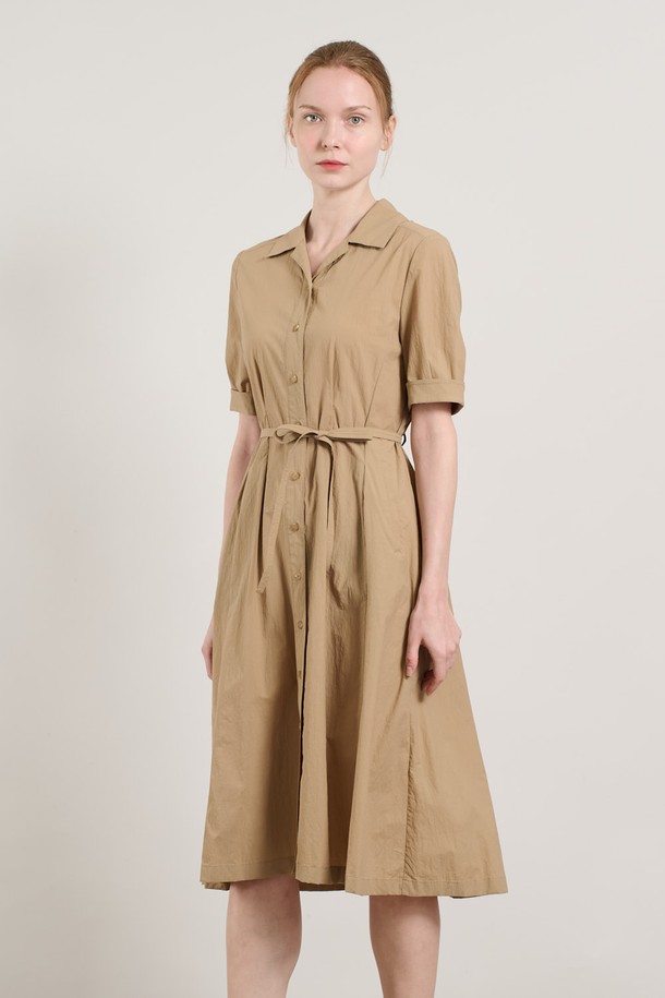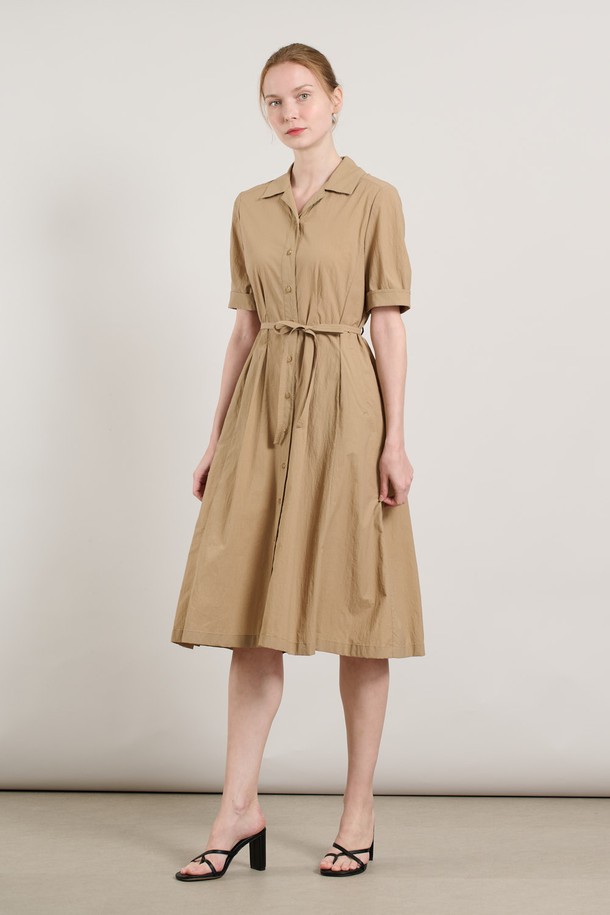 [25SU] 볼륨 소매 오픈형 플레어 원피스 - M BEIGE A5M4O68372