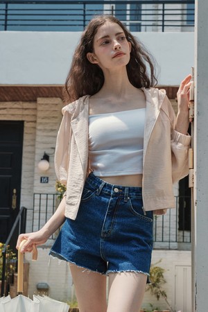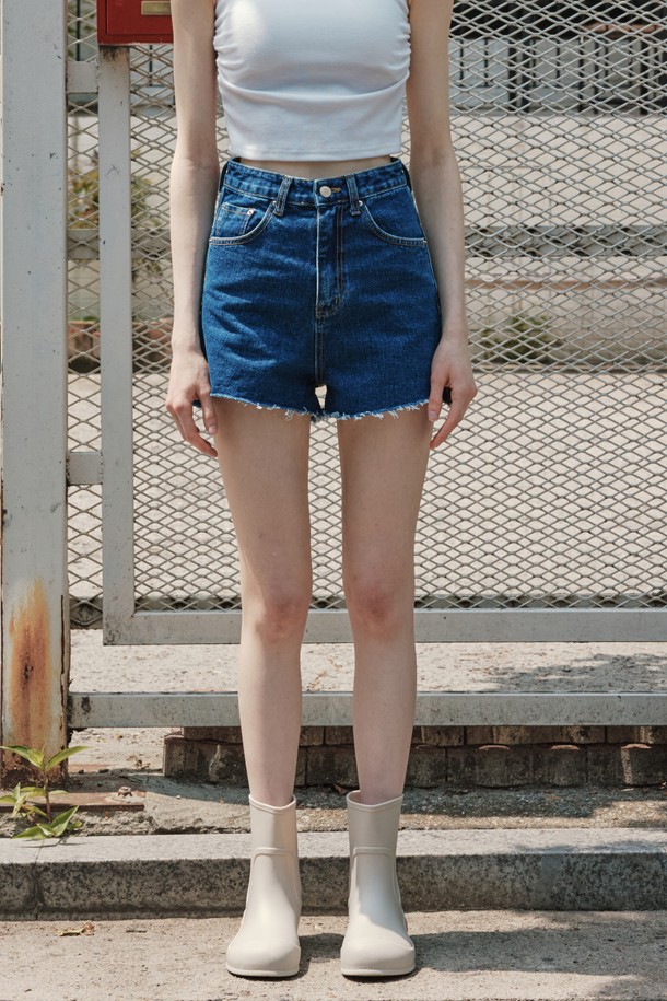 컷팅 데님 반바지 / 인디고