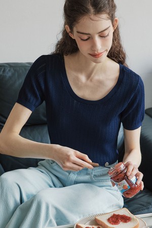 [2컬러] 펀칭 라운드 반팔 니트