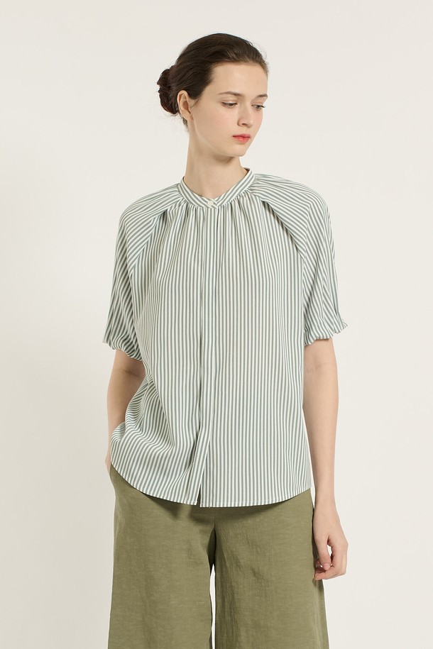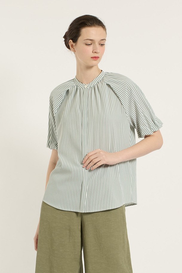 [25SU] 스트라이프 블라우스 - GREEN B5B5B44242