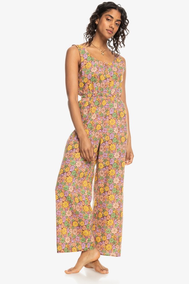 여성 플라워 패턴 슬리브리스 비치 롱 롬퍼 (RE11DR087CQR)