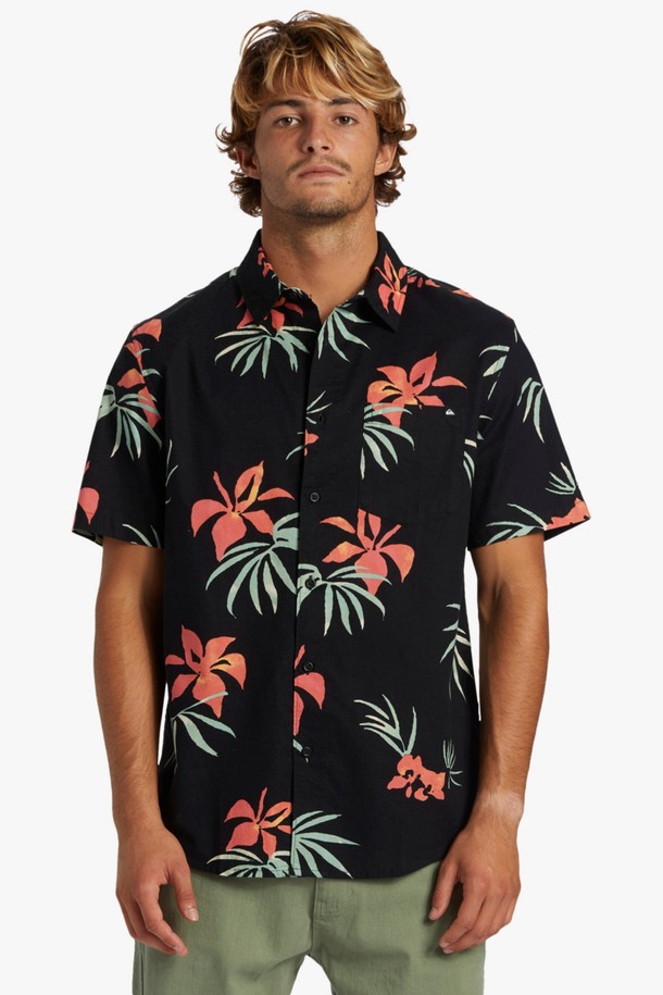남성 블랙 플라워 패턴 레귤러핏 셔츠 (QE21ST021KVJ)