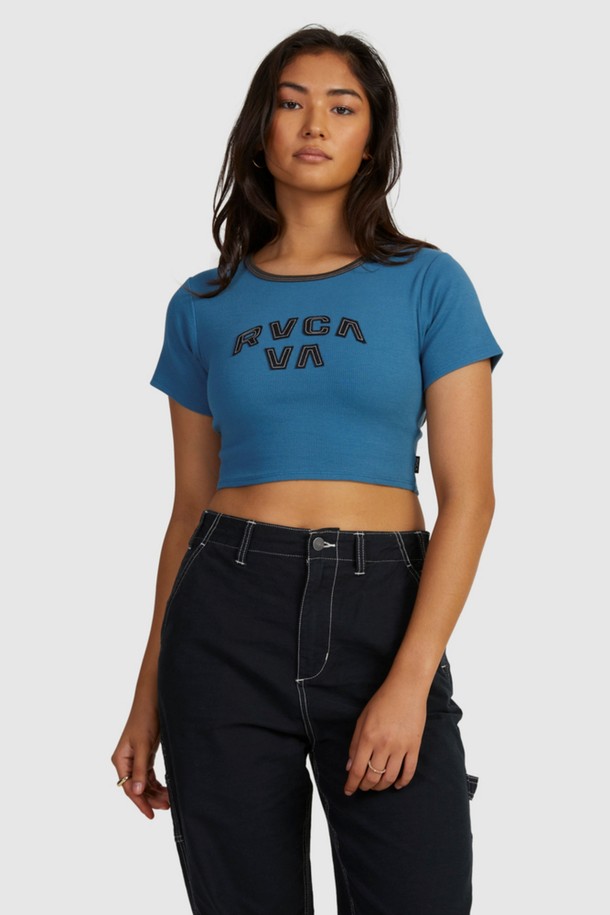 여성 블루 슬림핏 크롭 티셔츠(VE11ST312BPP)