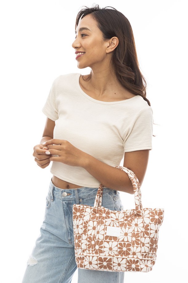 여성 브라운패턴 미니 코튼 캔버스 토트백 (WE13OB287CNT)