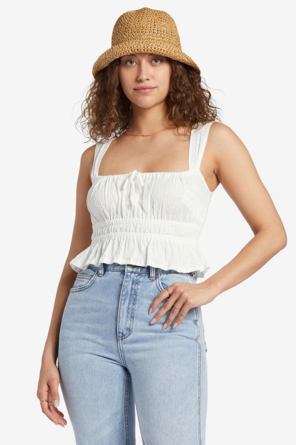 여성 화이트 셔링 보디스 개더링 니트 탱크 탑 (WE11SL190SC1)