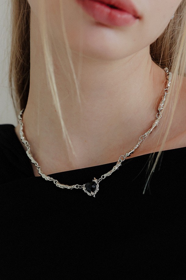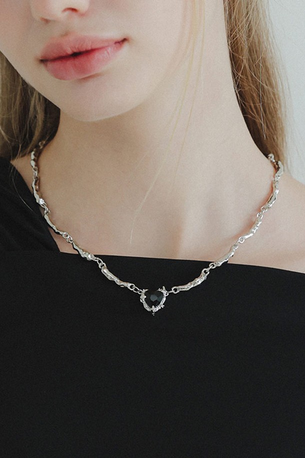 블랙 하트 큐빅 볼드 목걸이 AN013
