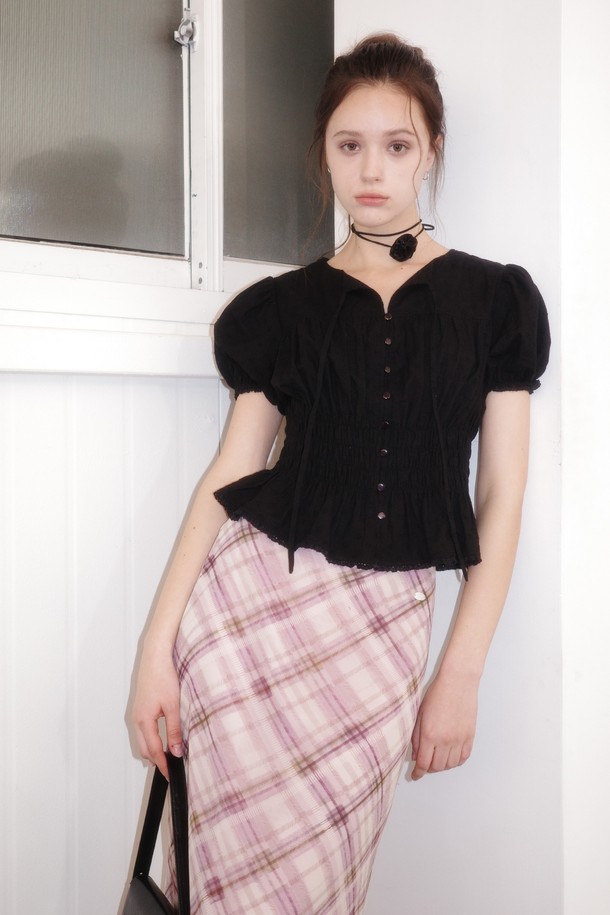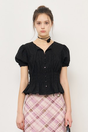 WOMAN 플라워 셔링 퍼프 블라우스 [3COL] / WBE2L03524