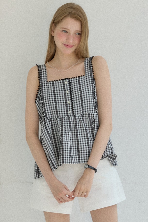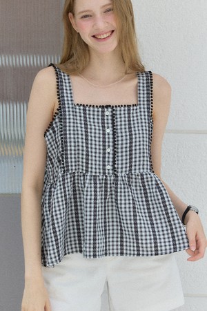 Freckle Button Sleeveless Blouse - Black