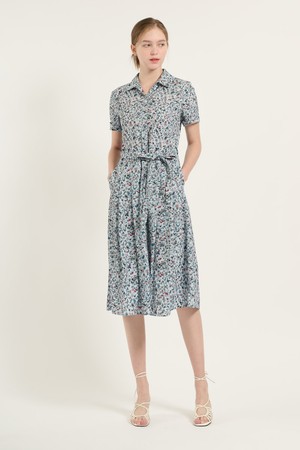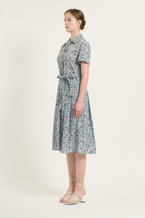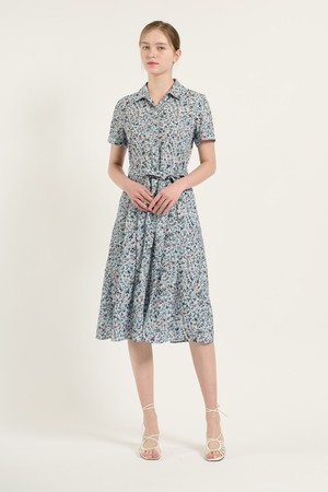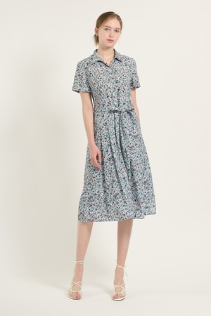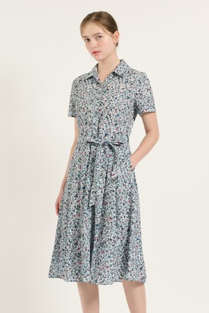 [25SU] 프린트 핏앤플레어 원피스 - M BLUE B5B5O65053
