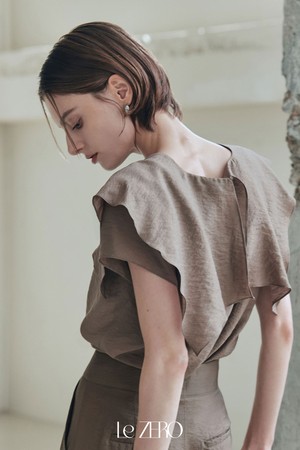 르제로 플로웨어 프릴 블라우스 / 쿨 브라운