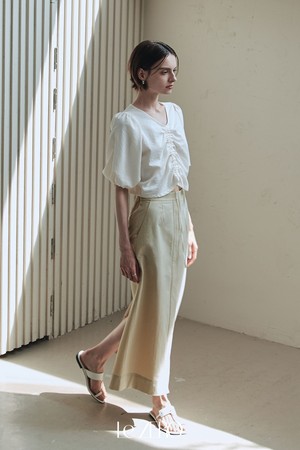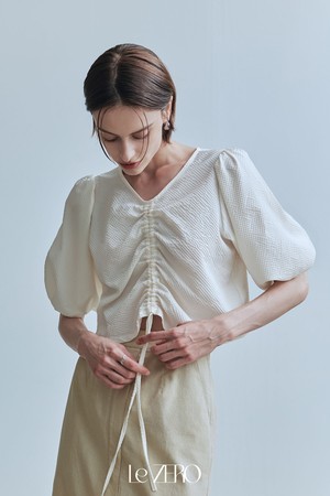 르제로 시어서커 스트링 블라우스 / 크림