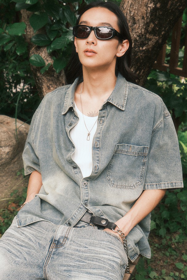 브러시드 하프 데님 셔츠 (라이트블루)