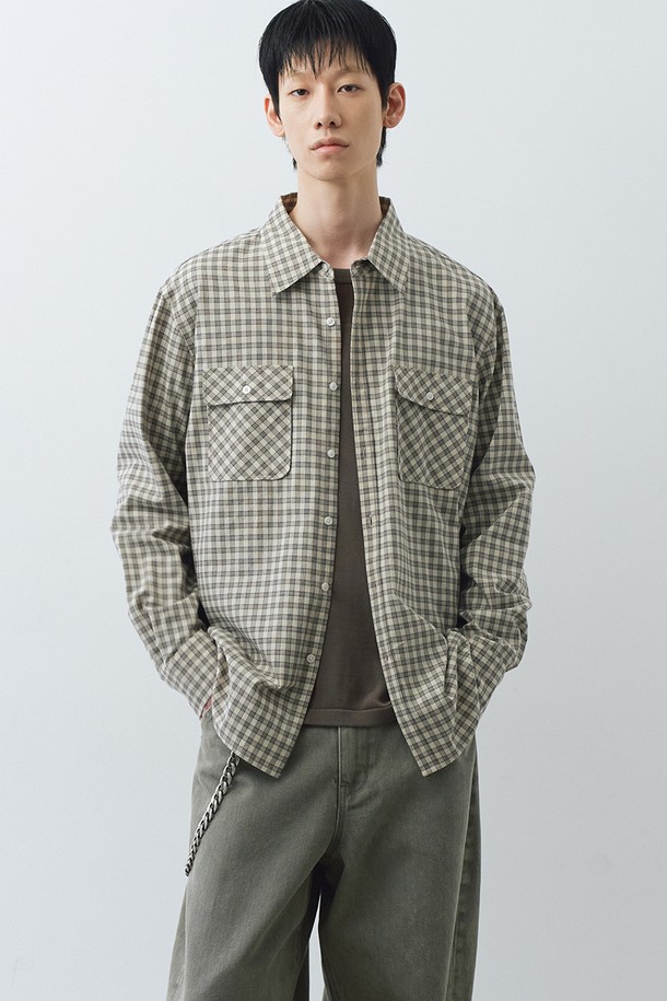 멀티 포켓 체크 셔츠 (베이지)