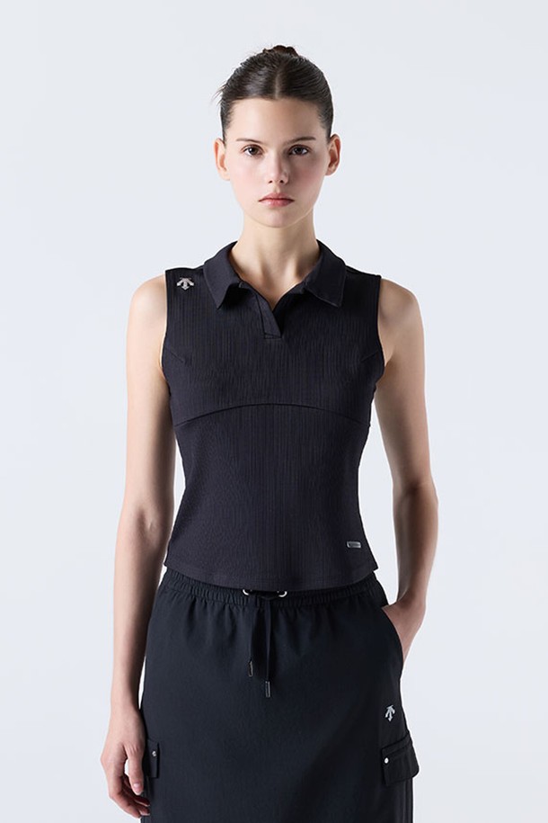 우먼스 카라형 골지 슬리브리스 블랙(SQ322PST72)