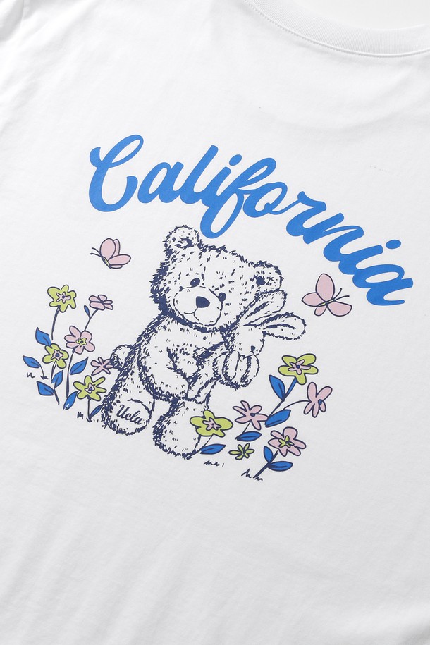 남녀공용 플라워 플러피 베어 반팔 티셔츠[WHITE](UB7ST91_31)