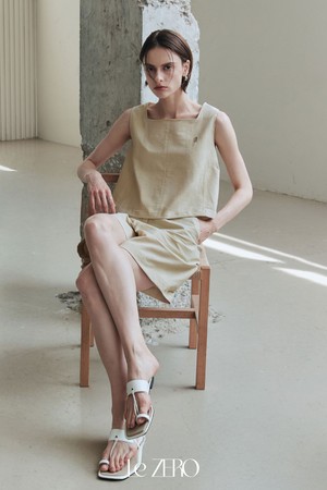 르제로 스티치 스퀘어 넥 슬리브리스 / 베이지