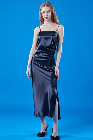 여름 셔링 맥시 슬림 실크 나시원피스 [BLACK] 레이어드원피스 ver.