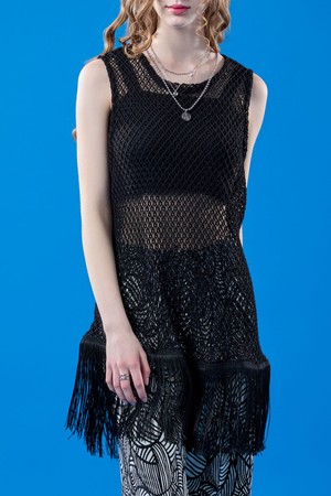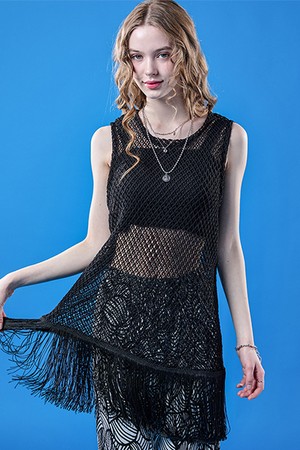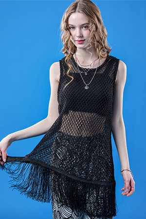 레이어드 네트 시스루 워터밤 루즈핏 나시 [BLACK]