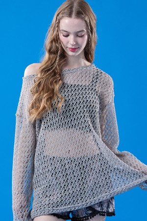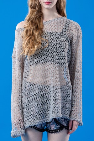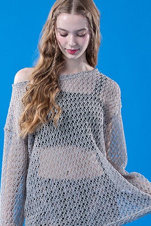자외선 차단 시스루 네트 워터밤 긴팔티 [그레이] 레이어드티 ver.