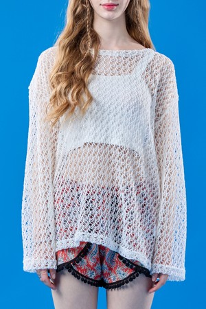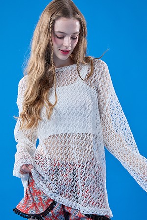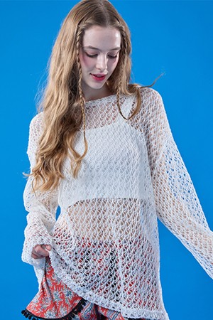 자외선 차단 시스루 네트 워터밤 긴팔티 [화이트] 레이어드티 ver.