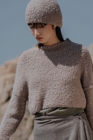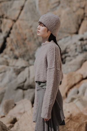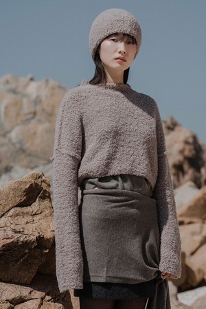 FLUFFY WOOL BLENDED KNIT HAT_GREY