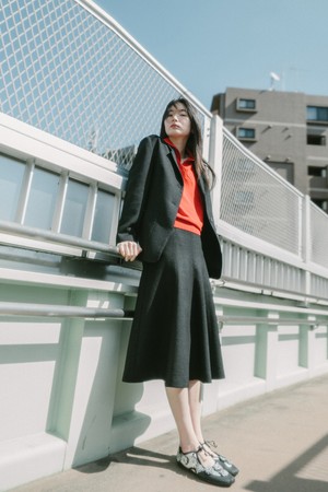 BOUCLE FLARE SKIRT_BLACK