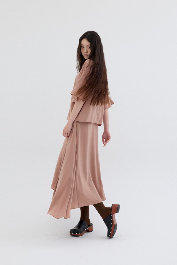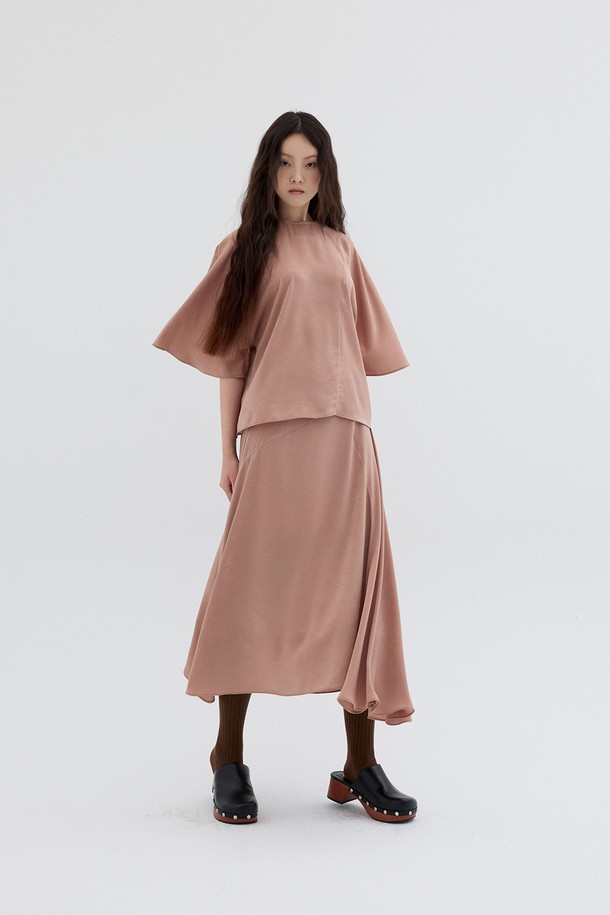 SATIN FLARE SKIRT_SALMON