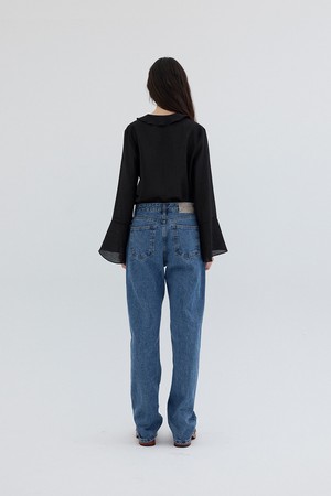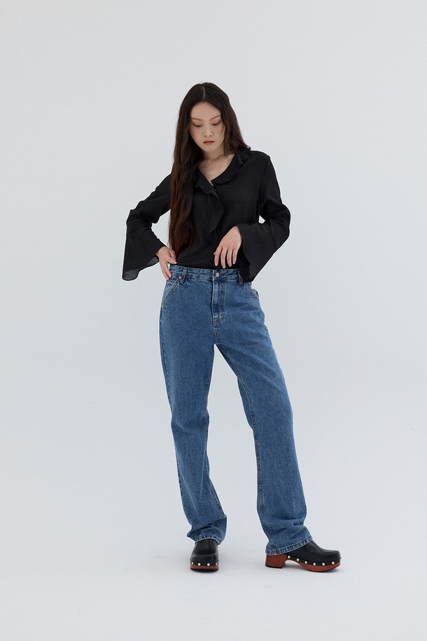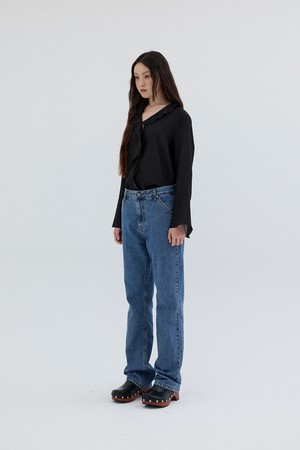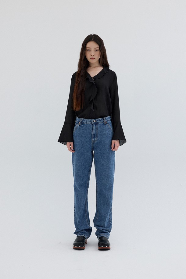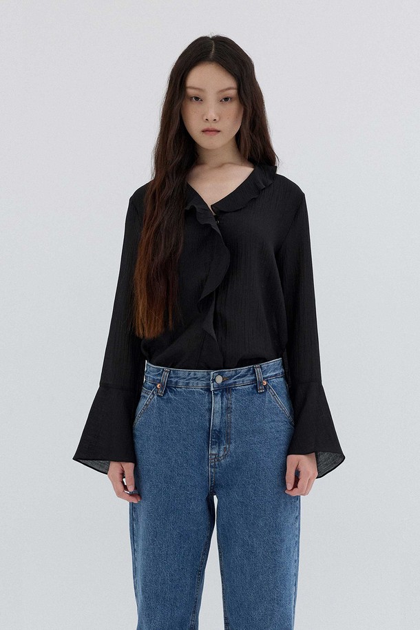 TEXTURED FRILL BLOUSE_BLACK