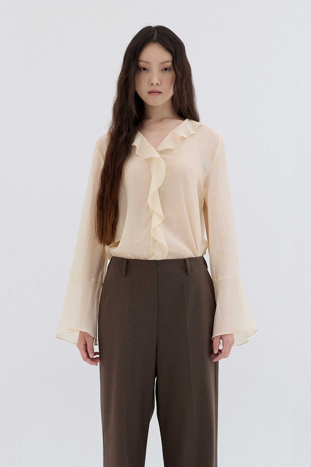 TEXTURED FRILL BLOUSE_LIGHT BEIGE