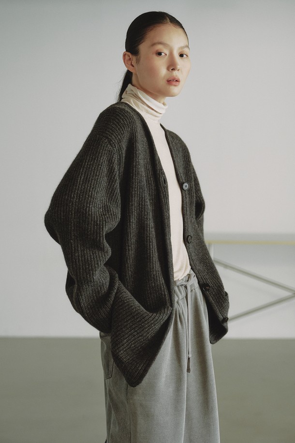 CASHMERE 10 BOXY CARDIGAN_DARK GREY