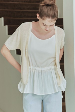 리본 셔링 슬리브리스 / 아이보리
