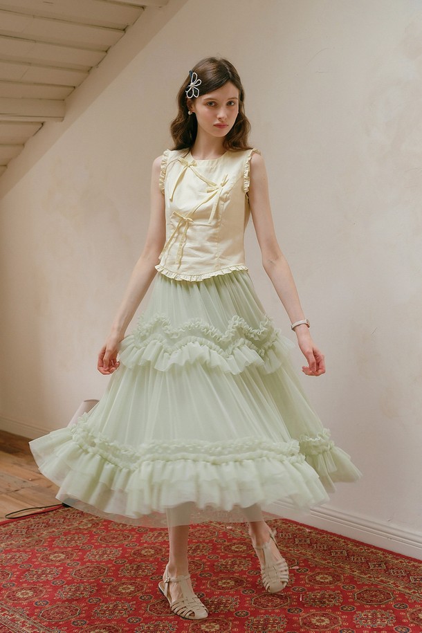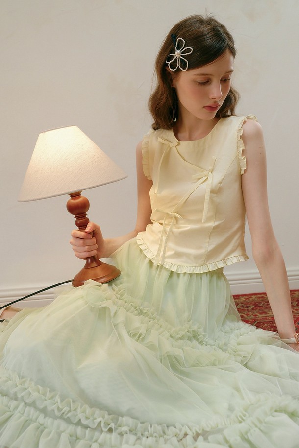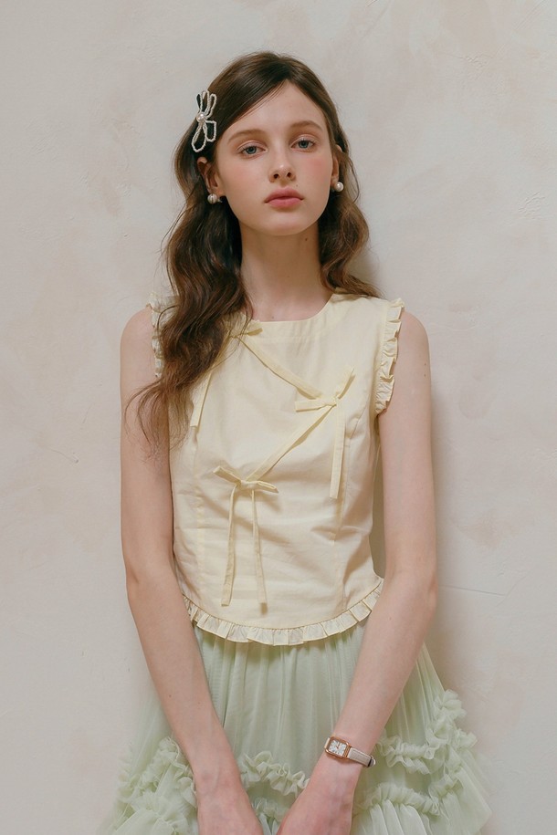 Ruffle line ribbon sleeveless top