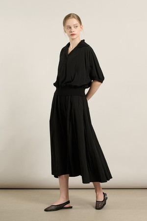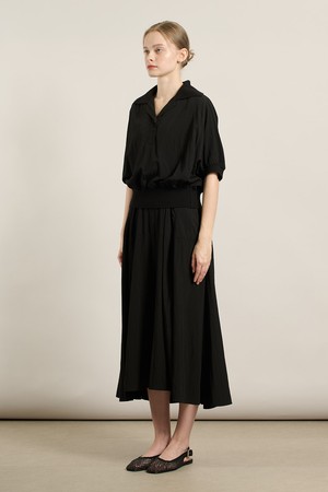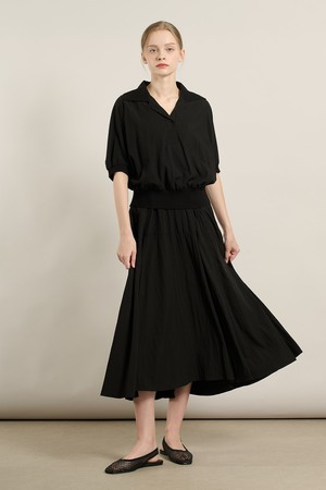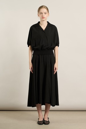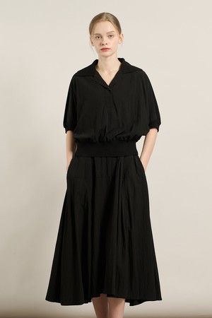 [25FA] 니트 배색 블라우스 셋업 원피스 - BLACK A5F7O68399