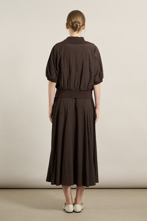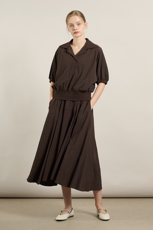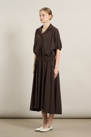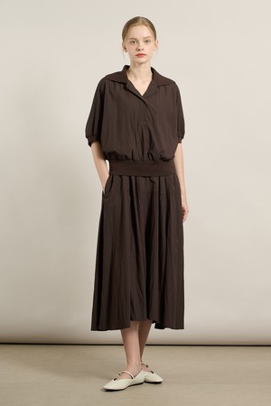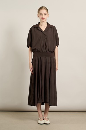 [25FA] 니트 배색 블라우스 셋업 원피스 - BROWN A5F7O68374