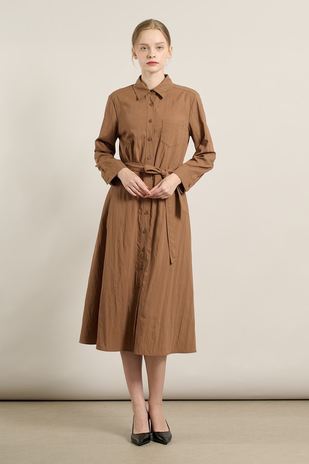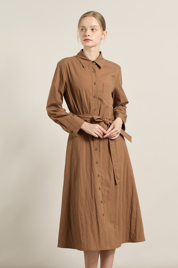 [25FA] 셔츠형 A라인 원피스 - BROWN A5F8O68174