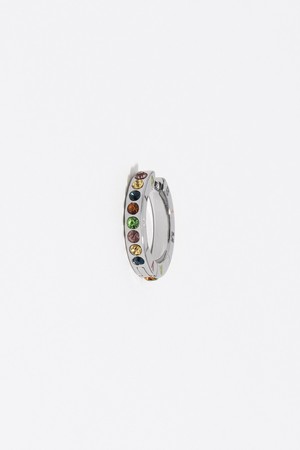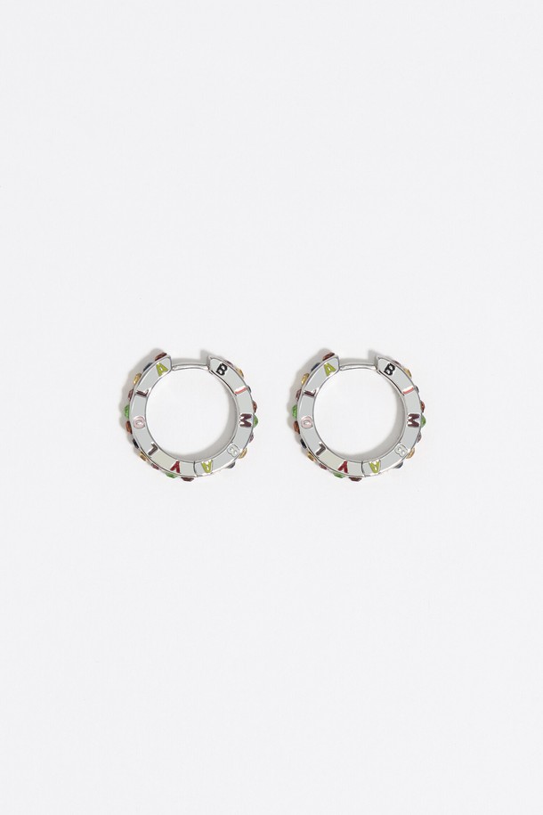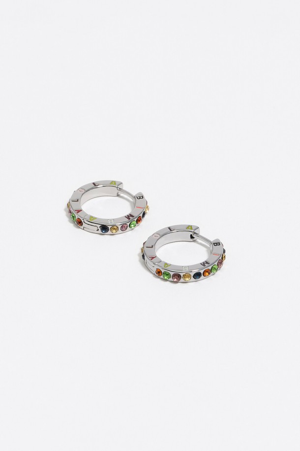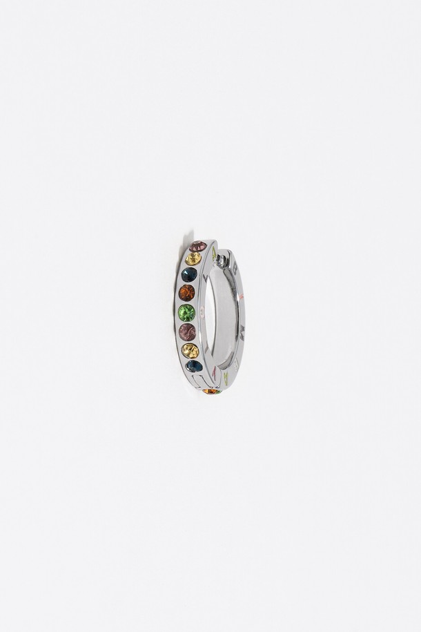 [25FW] 멀티컬러 크리스탈 로고 후프 실버 이어링 B256AIW002SIF