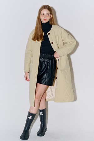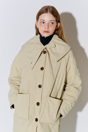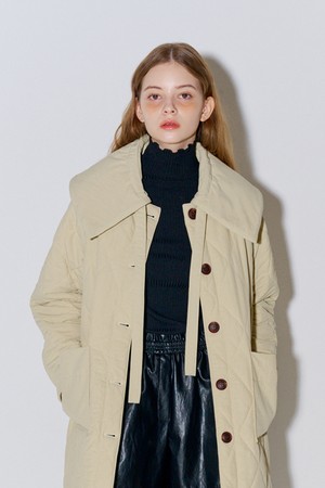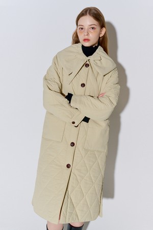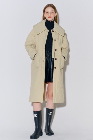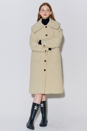 [리퍼브] Big Collar Quilted Long Coat Beige
